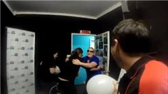 Pablo led two of his friends in popping 24 balloons while hugging in one minute.
