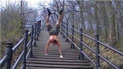 Gordon L. descended 127 steps on stairs while doing a handstand.