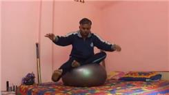Suresh Gaur switched from Lotus pose to Thunderbolt pose in 41.45 seconds while balancing on an exercise ball.