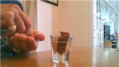 Tai Star stacked 97 pennies in a shot glass.