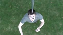 Peter B. balanced two poles on his head for 14.70 seconds.