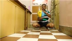 Suresh Gaur bounced a basketball using alternate sides of a table tennis paddle 104 times while sitting on his toes.