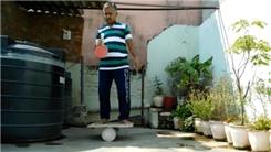 Suresh Gaur balanced a golf ball on a table tennis paddle handle for 29.59 seconds while standing on a rola bola.