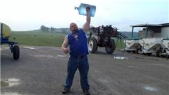Clint P. completed 25 overhead presses of a five-gallon jug of water using his right arm.