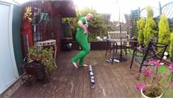 James B. kicked 24 empty soda cans in 10 seconds. He set the record during an episode of The Daily Edition in Sydney, Australia.