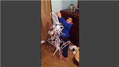 Jason's five-year-old son held a chain of 50 tangled-up hangers.