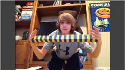 Jake G. made a bridge of 30 blocks between his hands.