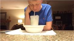 TJ blew bubbles from a glass of milk for four minutes, 35.67 seconds.