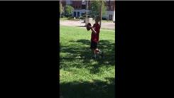 Hunter and Dylan completed 26 one-handed football catches, alternating between the two of them.