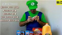Fastest Time To Eat 12 Choco Pies, Four Pudding Cups, Four Gelatin Cups, 12 Ice Cream Sandwiches And Drink One Gallon Of Punch While Dressed As Luigi