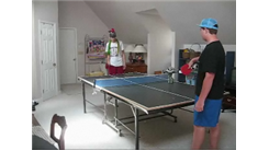 Longest Table Tennis Rally With Both Participants Wearing Hats And One Participant Wearing Fun Slides
