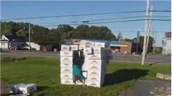 Largest Cardboard Tower Cartwheeled Into While Live On The Radio