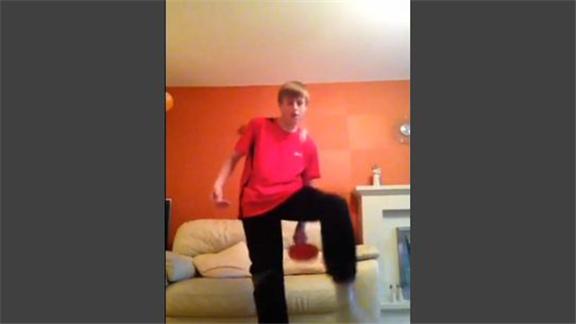 Stefan Vass bounced a table tennis ball on a table tennis paddle 107 times, alternating hits over and under his leg.