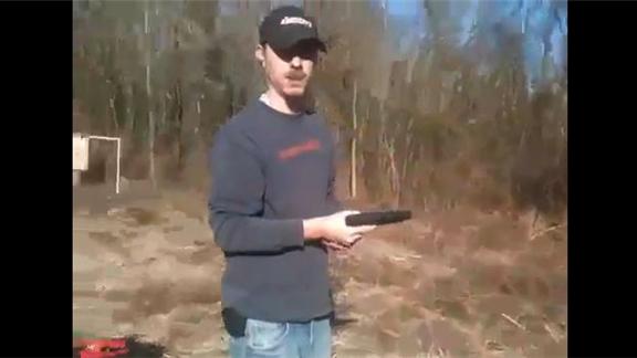 Shea C. shot a large nail between two clay targets from 10 yards away. He used a Springfield XDM .40 cal handgun.