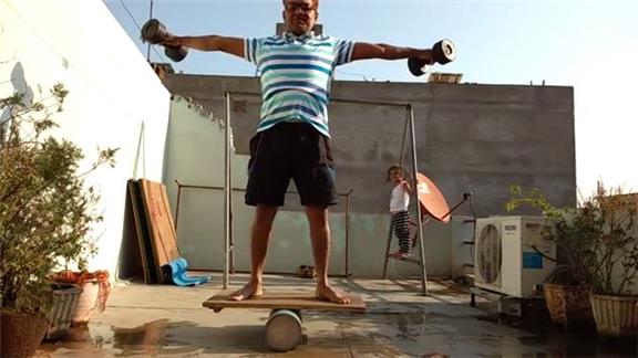 Suresh Gaur held a star pose for 37.41 seconds while holding a 3.30-kilogram dumbbell in each hand and standing on a rola bola.
