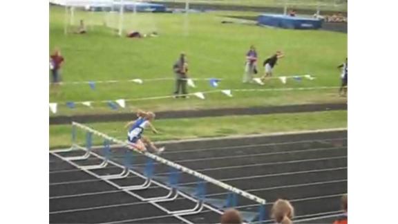 13-year old Melissa White completed the 100 metre hurdles in 18.78 seconds while wearing a blue outfit.