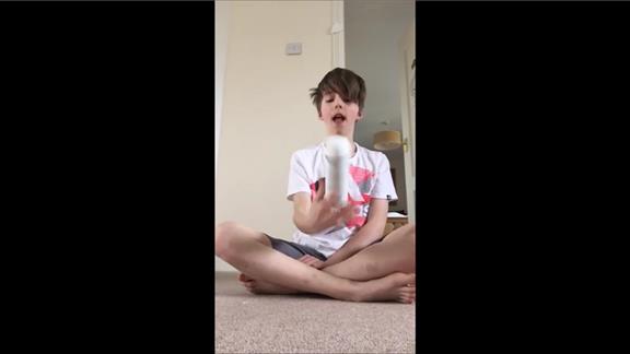 Finlay M. flipped a deodorant can 180 degrees 20 times in 10 seconds.