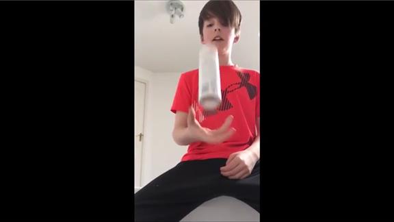 Finlay M. flipped a deodorant can 180 degrees 263 times.