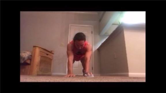 Alicia Weber performed 20 bean bag toss plank jack tiger bend push-ups in two minutes, 13.10 seconds.