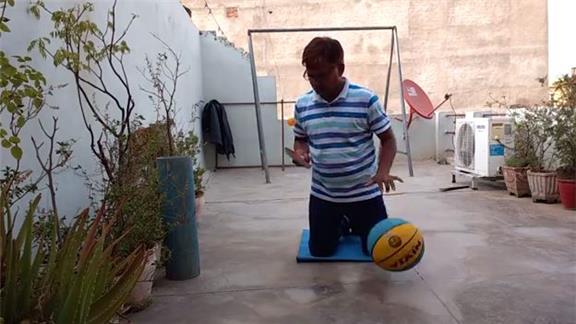 Suresh Gaur bounced a table tennis ball 196 times using alternate sides of a paddle while kneeling and dribbling a basketball on his other hand.