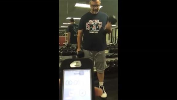 John C. performed 69 alternating dumbbell curls in one minute using two 35-pound dumbbells.