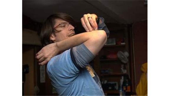 Greg Christman balanced 12 American quarters on his elbow and caught them.