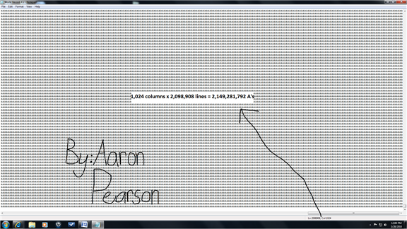 How do you actually prove this record if you're opening a huge document? Let's say I make a 90 GB file full of the letter A. How do I prove that the entire 90 GB is full of 'a' and not other letters? This record is only limited by hard drive space and the size of 64-bit integers for me.