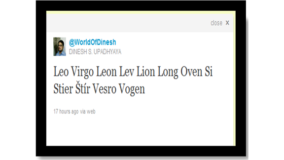 Dinesh Shivnath Upadhyaya used the letters in ‘LIVESTRONG’ to form the names of 12 astrological signs and fit them into a singletweet.