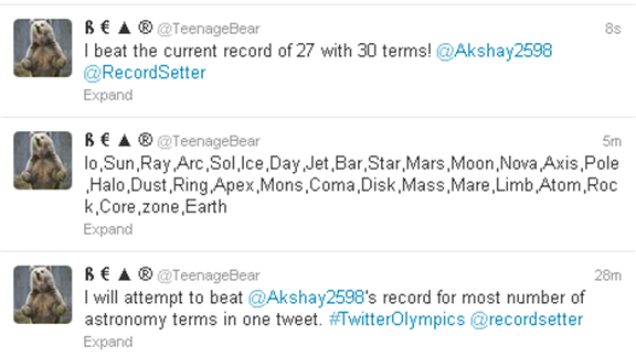 Joseph Caswell tweeted 30 Astronomy terms in a single tweet.
