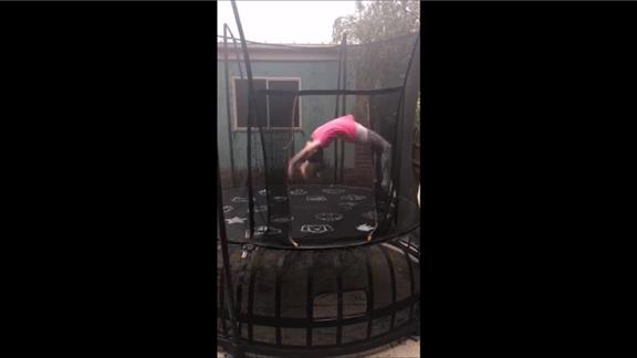 Chloe S. completed 14 back handsprings on a trampoline in 20 seconds.