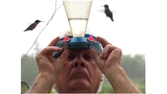 Doug McManaman balanced a working hummingbird feeder on his hands for three minutes, 47.40 seconds.