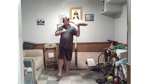 Brian Pankey balanced an egg on the back of his hand while standing on one foot and spinning a pillow for four minutes, 1.15 seconds.