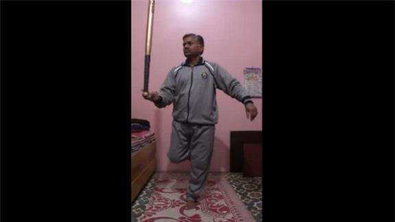 Suresh Gaur balanced a baseball bat on his index finger for four minutes, 31.05 seconds while standing on one foot.