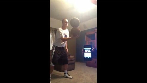 Aj Ireland balanced a basketball on top of another basketball using only one hand for one minute, 9.78 seconds.