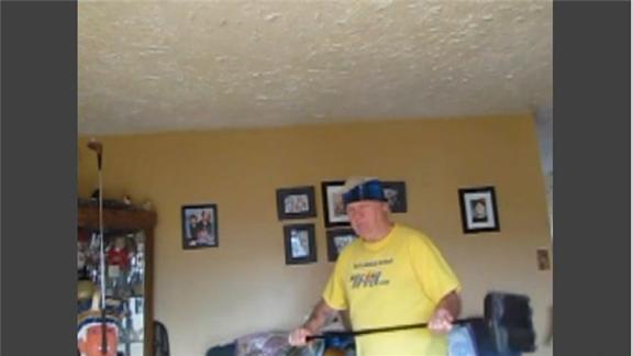 Doug McManaman balanced a floor sweeper on his chin for three minutes, 11.97 seconds.