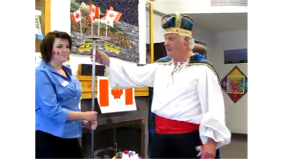Doug McManaman balanced four Canadian flags on a rotating pole on his chin for 33.34 seconds while kneeling.