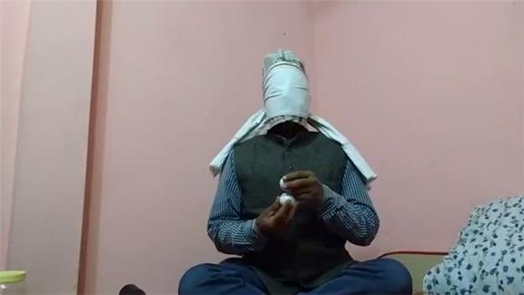 Suresh Gaur balanced a golf ball on top of another golf ball held in his hand in 13.08 seconds while blindfolded.