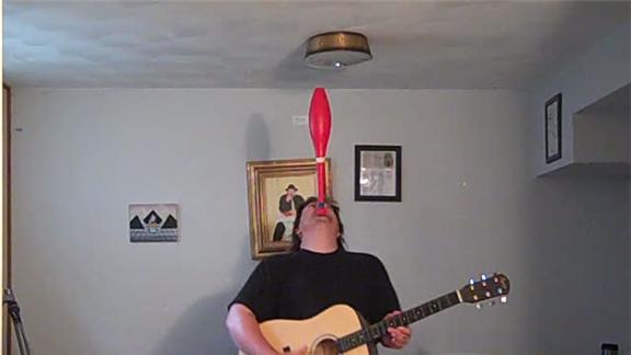 Longest Time To Balance Juggling Club On Chin While Singing And Playing Guitar