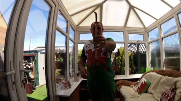 Mark Evans balanced a shoehorn on his thumb for 10 minutes, 12.09 seconds.