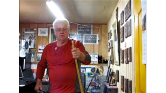 Doug McManaman balanced a sword on a pool cue on his thumb for two minutes, 4.76 seconds.