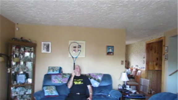 Doug McManaman balanced a tennis racket on one finger for 59.32 seconds.