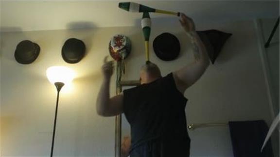 Jay B. balanced one juggling club on top of another and balanced both clubs on his chin for three minutes, 29.50 seconds.