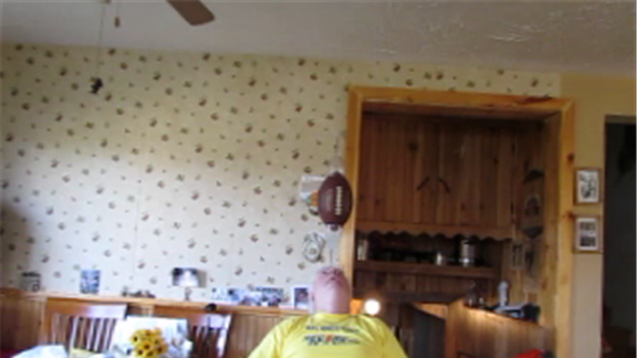 Doug McManaman balanced an upside-down wine glass on top of a football on top of another wineglass on his head for two minutes, 20.96 seconds.