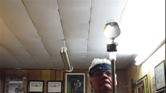 Doug McManaman balanced a wine glass on top of a solar light on his thumb for 16 minutes, 1.30 seconds.