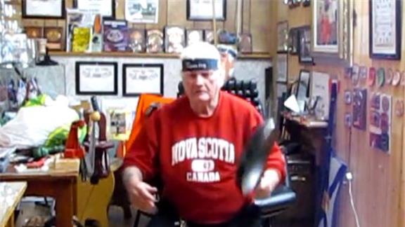 Doug McManaman balanced a 13-inch frying pan on his chin for 34.86 seconds while kneeling.