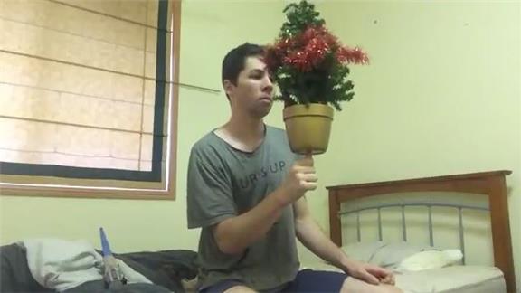 Longest Time Balancing An 18-Inch Christmas Tree On The Tip Of Thumb While Seated