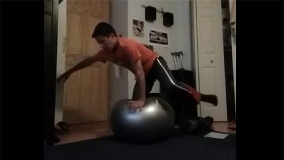 Travis T. balanced on an exercise ball using his knee and hand for one minute, 20.47 seconds.
