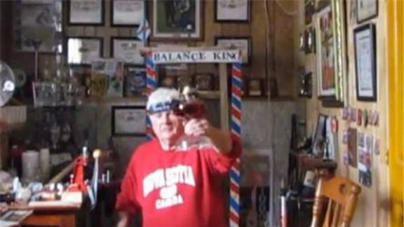 Doug McManaman balanced an oil lamp on his chin for one minute, 15.91 seconds while kneeling.