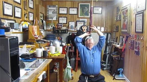 Doug McManaman balanced an umbrella on his forehead for 14.47 seconds while kneeling.