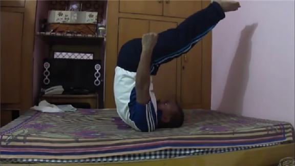 Suresh G. balanced on the back of his neck for three minutes, 9.64 seconds.
